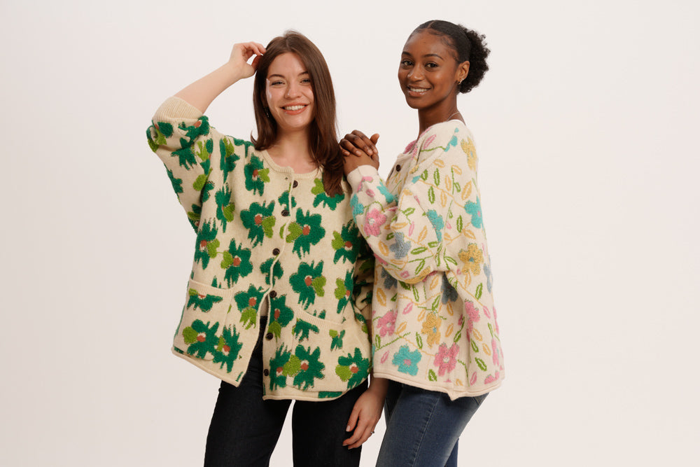 Soft, vibrant, and full of feel-good energy, the Garden Crush Bundle is made for flower lovers with a flair for fun. This dreamy duo pairs two bestselling cardigans that celebrate nature, colour, and comfort in every stitch. Whether you're out for a stroll or styling up for a brunch date, these florals are here to lift your look and your mood.